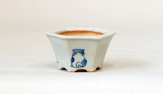 再入荷!三面子犬図六角鉢 月山 7cm JG311