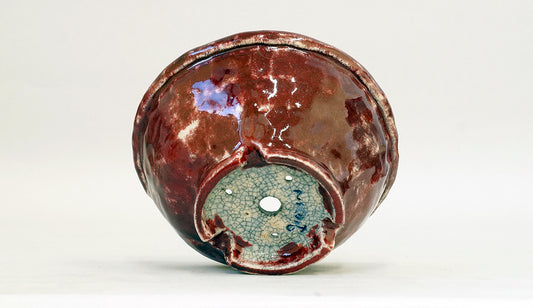 流れる青と白と赤の丸鉢 てるみ 12cm T050