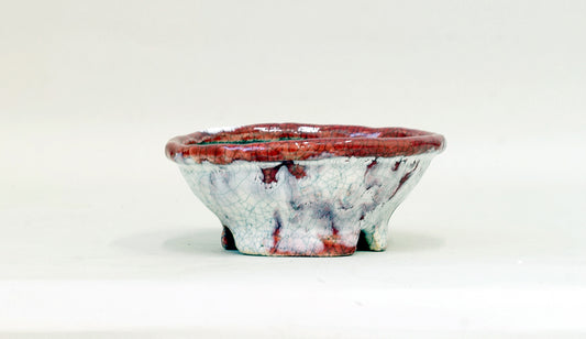 流れる青と白と赤の丸鉢 てるみ 12cm T050
