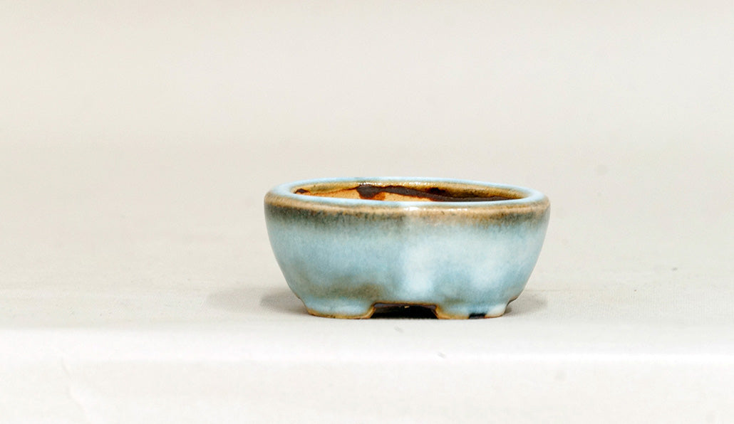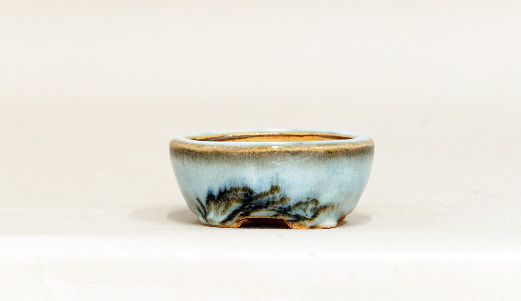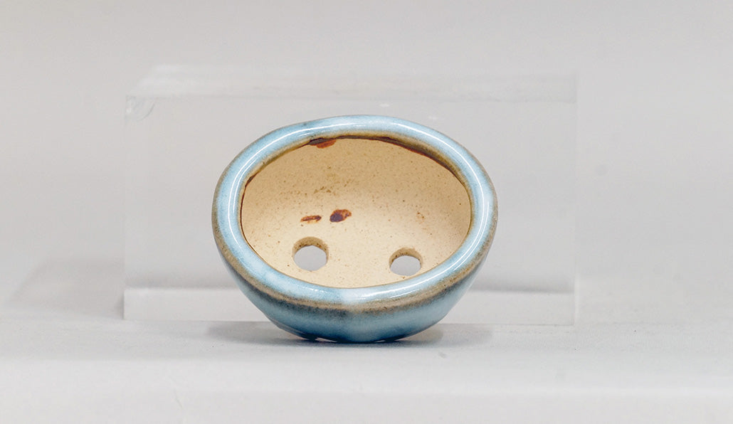 作り手:月山(がっさん)。京焼の陶工。食器職人として長いキャリアを築いています。盆栽の鉢は、趣味で始めた自身の盆栽のために数十年前に作り始めました。盆栽の既成概念にとらわれない自由な発想と、京焼きの数々の高度な技術によって、作品を生み出しています。