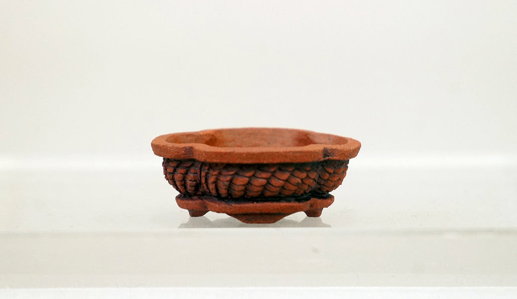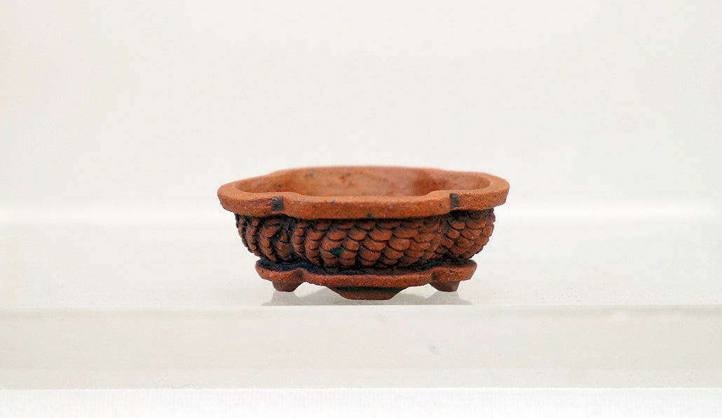 作り手:コブ。タイで活動する男性作家です。自身が育てる小さな盆栽のためにミニ鉢を作りはじめ、専業鉢作家へ。ジュエリーデザイナーからの転身です。精緻な彫り込みによる独創的なデザイン、カラフルな色の鉢を多く生み出しています。