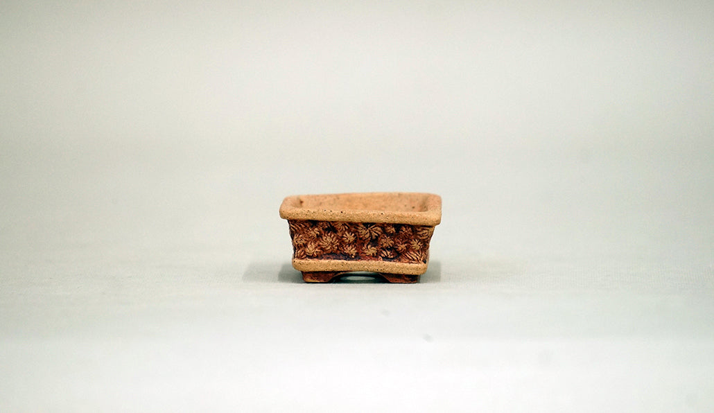 Kob(コブ)。タイで活動する男性作家です。自身が育てる小さな盆栽のためにミニ鉢を作りはじめ、鉢の専業作家になりました。ジュエリーデザイナーからの転身です。精緻な彫り込みによる独創的なデザイン、美しい形が特徴です。