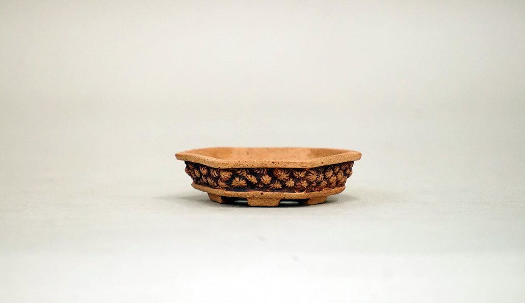 Kob(コブ)。タイで活動する男性作家です。自身が育てる小さな盆栽のためにミニ鉢を作りはじめ、鉢の専業作家になりました。ジュエリーデザイナーからの転身です。精緻な彫り込みによる独創的なデザイン、美しい形が特徴です。