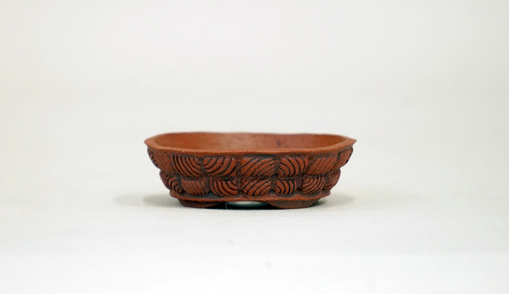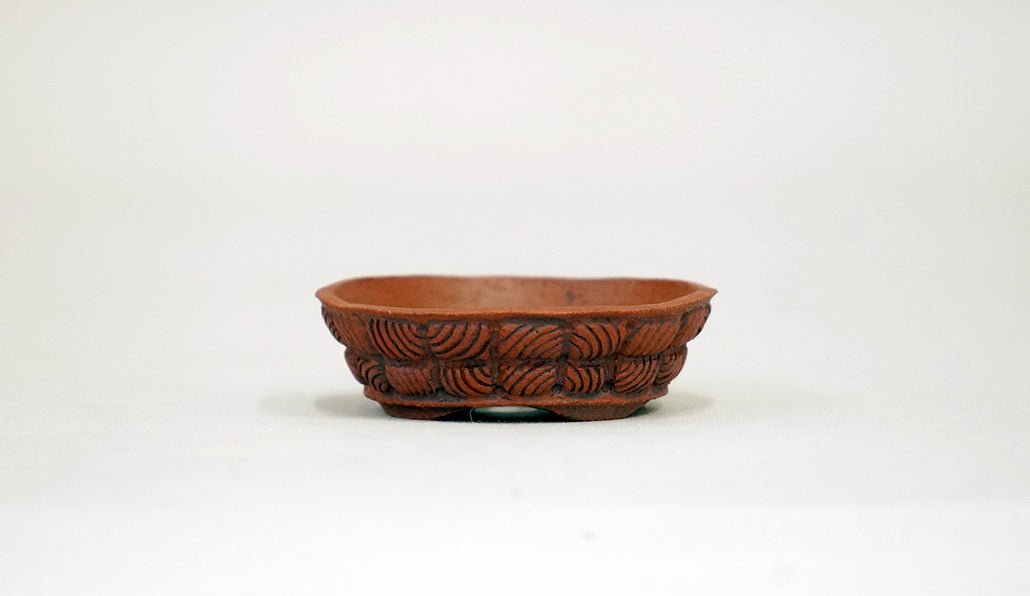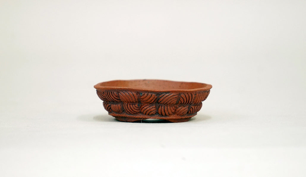 Kob(コブ)。タイで活動する男性作家です。自身が育てる小さな盆栽のためにミニ鉢を作りはじめ、鉢の専業作家になりました。ジュエリーデザイナーからの転身です。精緻な彫り込みによる独創的なデザイン、美しい形が特徴です。