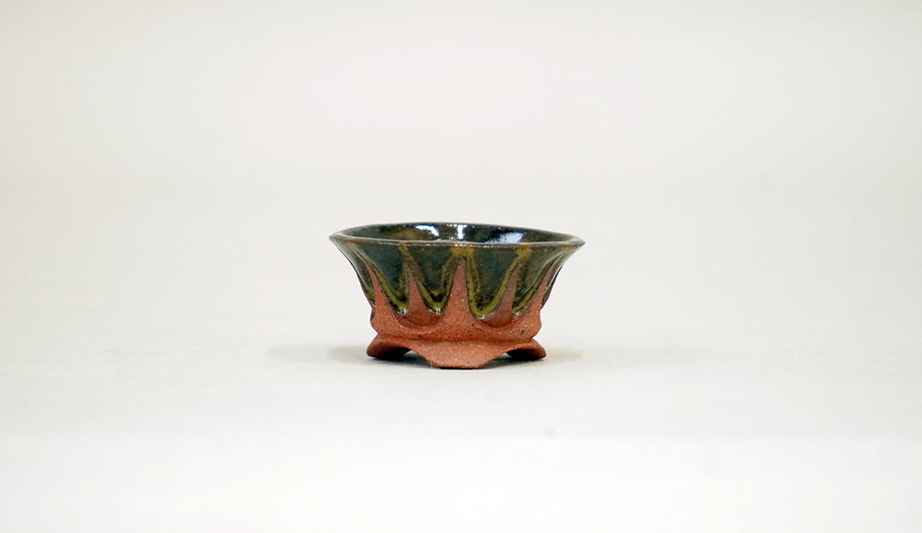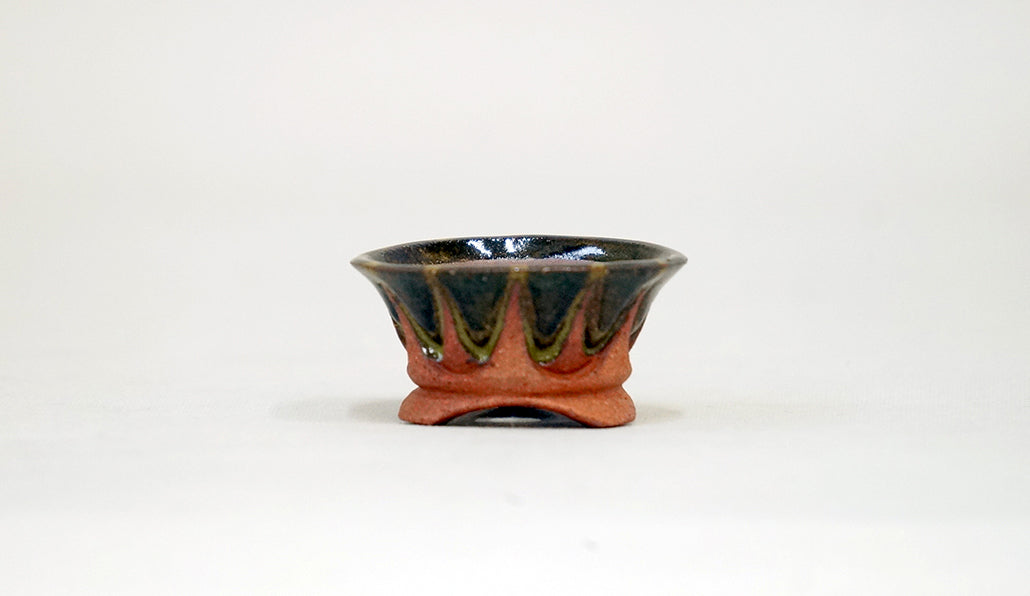 Kob(コブ)。タイで活動する男性作家です。自身が育てる小さな盆栽のためにミニ鉢を作りはじめ、鉢の専業作家になりました。ジュエリーデザイナーからの転身です。精緻な彫り込みによる独創的なデザイン、美しい形が特徴です。