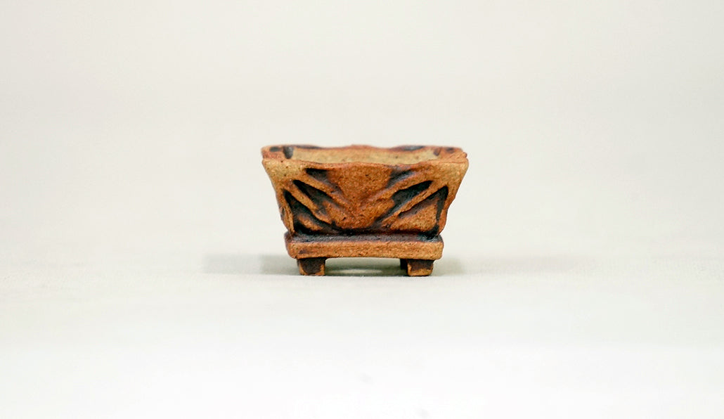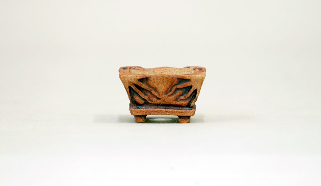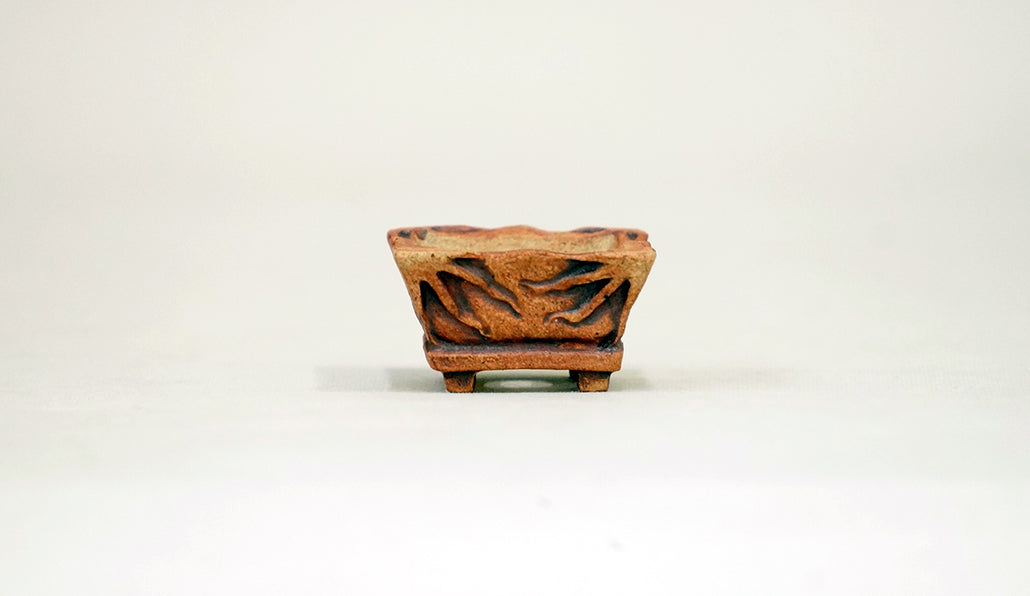 Kob(コブ)。タイで活動する男性作家です。自身が育てる小さな盆栽のためにミニ鉢を作りはじめ、鉢の専業作家になりました。ジュエリーデザイナーからの転身です。精緻な彫り込みによる独創的なデザイン、美しい形が特徴です。