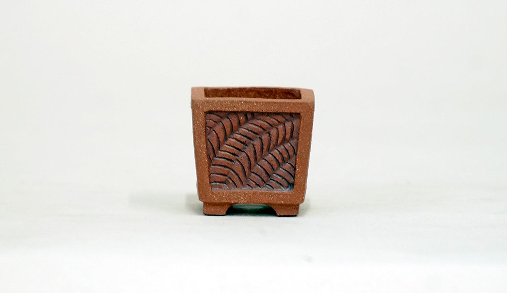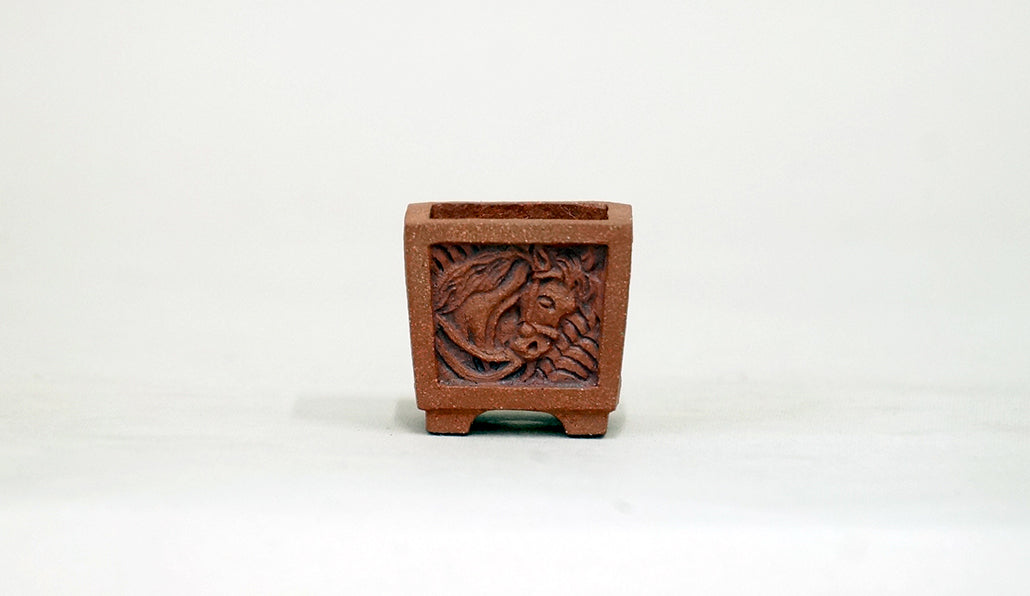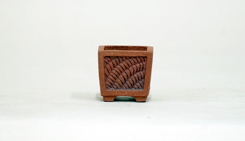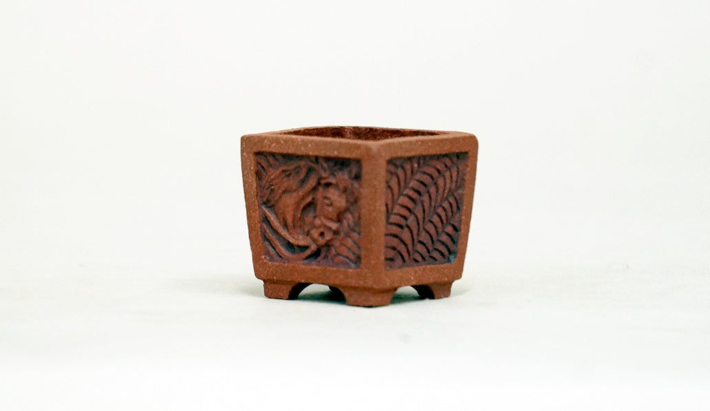Kob(コブ)。タイで活動する男性作家です。自身が育てる小さな盆栽のためにミニ鉢を作りはじめ、鉢の専業作家になりました。ジュエリーデザイナーからの転身です。精緻な彫り込みによる独創的なデザイン、美しい形が特徴です。