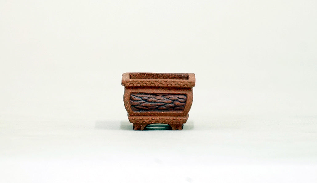Kob(コブ)。タイで活動する男性作家です。自身が育てる小さな盆栽のためにミニ鉢を作りはじめ、鉢の専業作家になりました。ジュエリーデザイナーからの転身です。精緻な彫り込みによる独創的なデザイン、美しい形が特徴です。