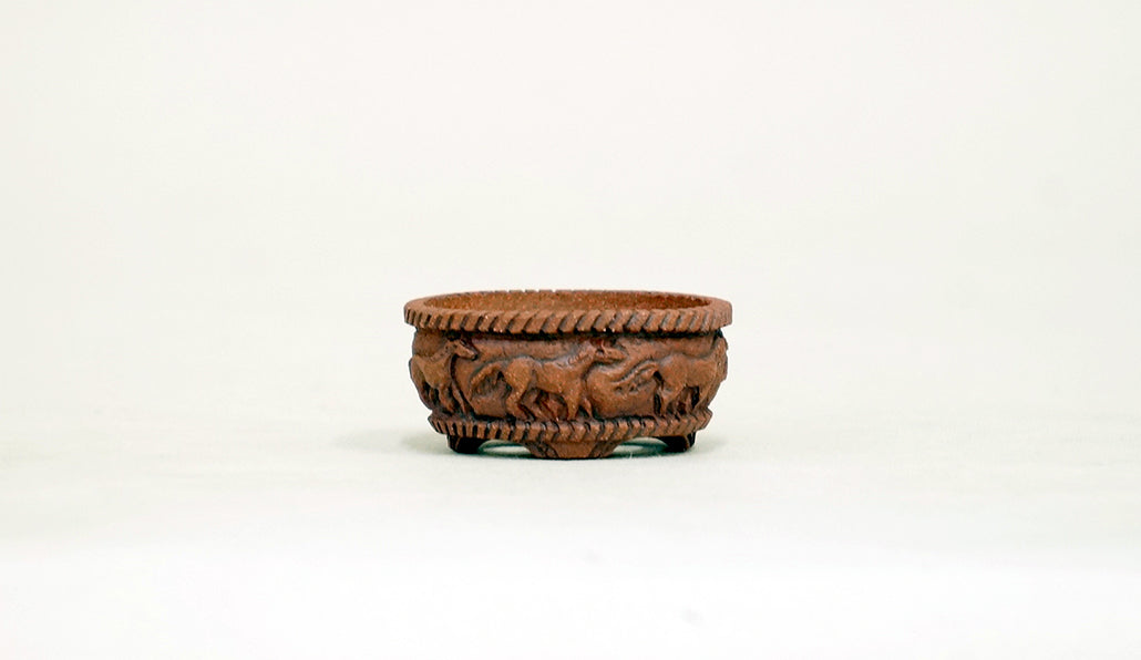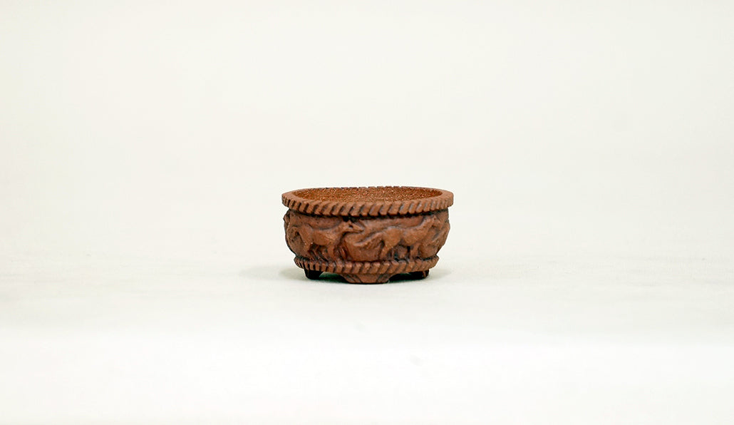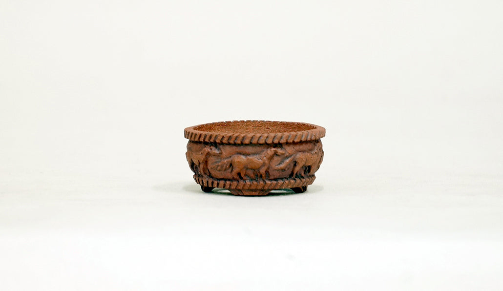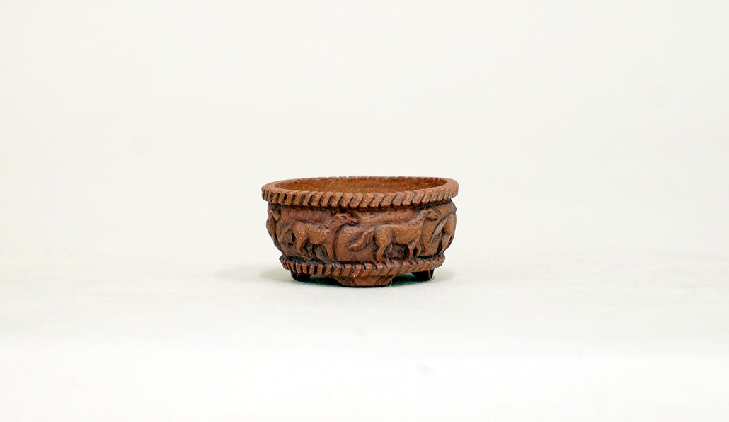 Kob(コブ)。タイで活動する男性作家です。自身が育てる小さな盆栽のためにミニ鉢を作りはじめ、鉢の専業作家になりました。ジュエリーデザイナーからの転身です。精緻な彫り込みによる独創的なデザイン、美しい形が特徴です。