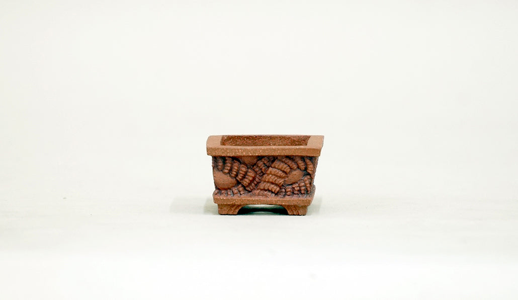 Kob(コブ)。タイで活動する男性作家です。自身が育てる小さな盆栽のためにミニ鉢を作りはじめ、鉢の専業作家になりました。ジュエリーデザイナーからの転身です。精緻な彫り込みによる独創的なデザイン、美しい形が特徴です。