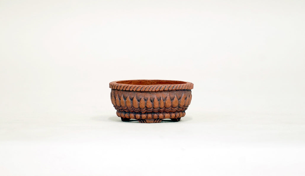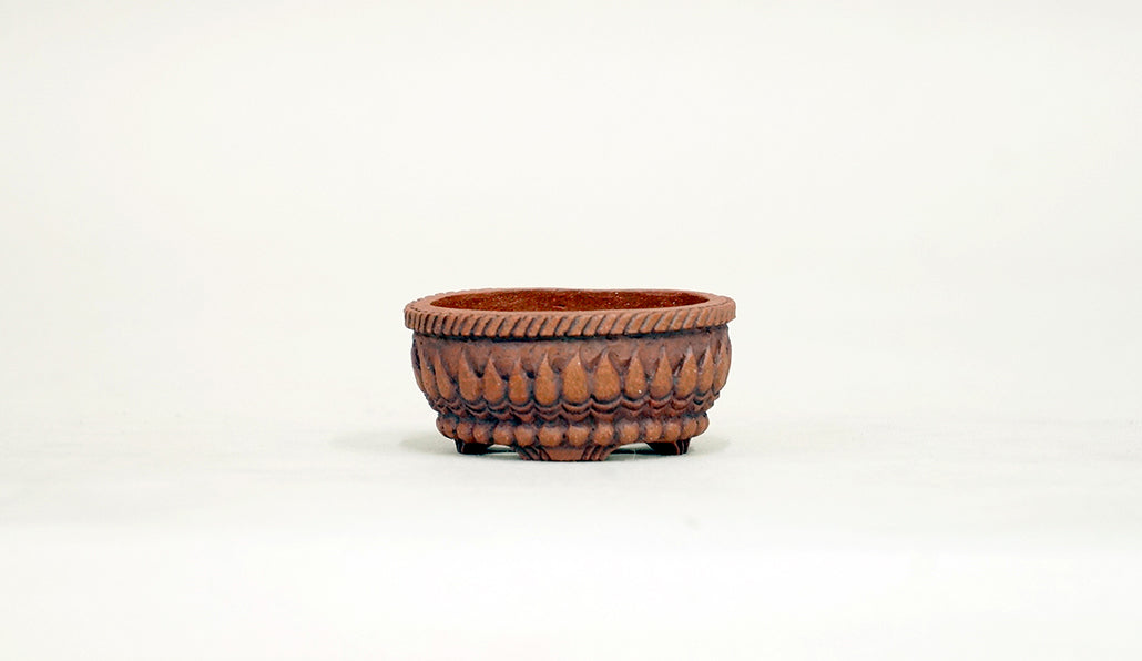Kob(コブ)。タイで活動する男性作家です。自身が育てる小さな盆栽のためにミニ鉢を作りはじめ、鉢の専業作家になりました。ジュエリーデザイナーからの転身です。精緻な彫り込みによる独創的なデザイン、美しい形が特徴です。