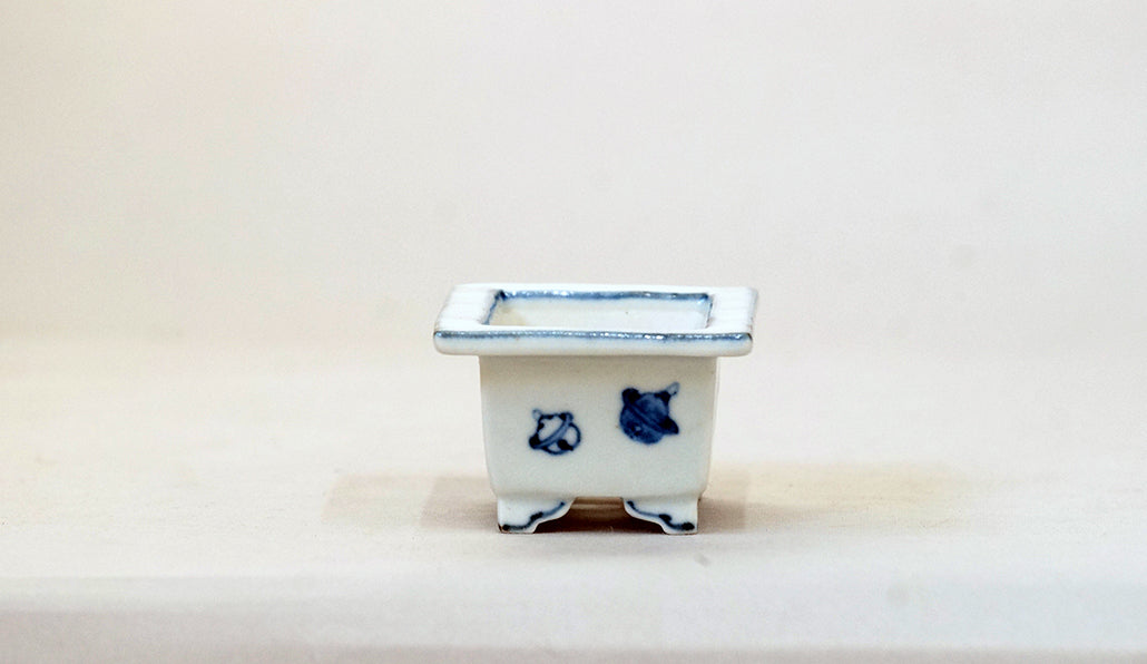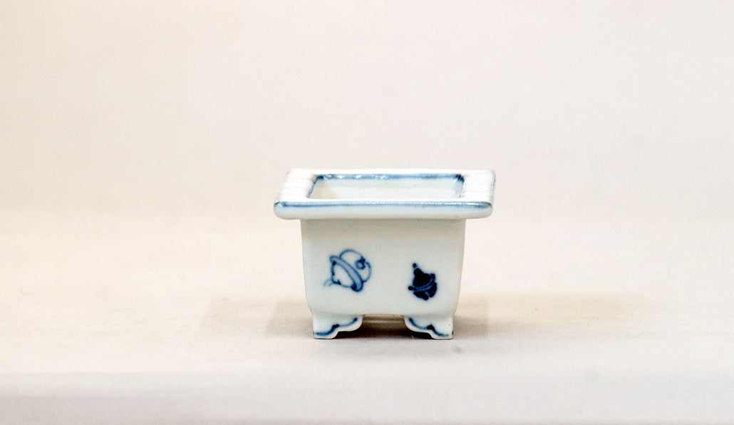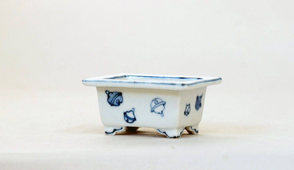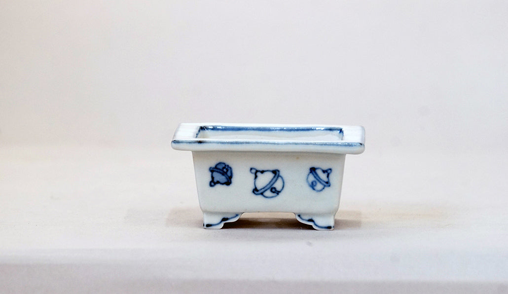 石川友香(いしかわゆか)。栃木県の宇都宮市で作陶する女性の盆栽鉢作家です。東京の美術大学を卒業後、佐賀県の有田で磁器や絵付けを学びました。磁器を中心に、ふんわりとした絵柄の鉢を多く作っています。絵の主張を押さえ、植物との美しい調和を生み出す作品が特長です。